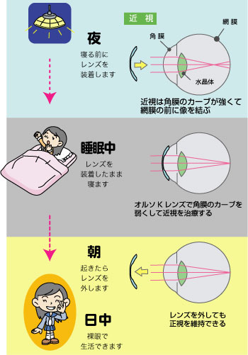 就寝中に特殊な形状のハードコンタクトレンズを装用し、
